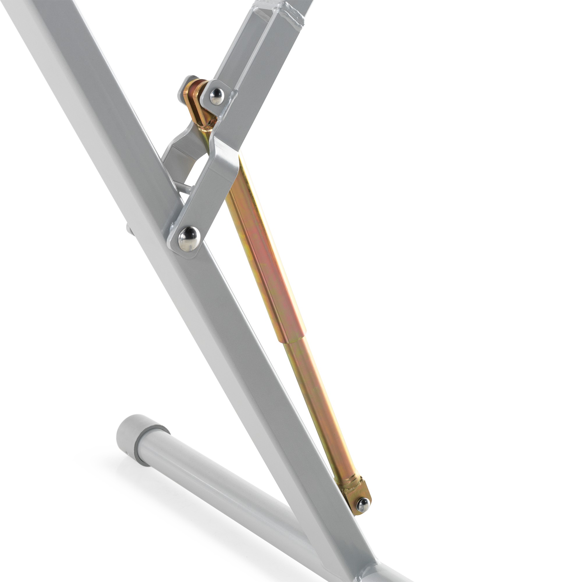 Newly developed soft Balance Beam, specially designed for training purposes, covered with an elastic padding and hygroscopic material. Quick and easy height adjustment from 60-90 cm with 10 cm increments and from 90-130 cm with 5 cm increments. During the height adjustment the weight of the beam is compensated for by means of a gas preasure spring and the feet stay in the same position, making it unnecessary to move the mats. Length 500 cm.